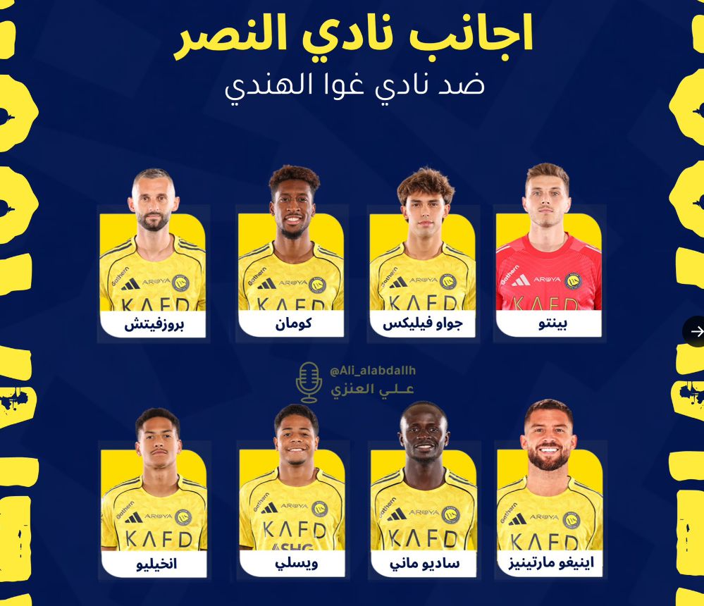 6686体育app11月6日讯 据利雅得胜出局跟队记者alabdallh报道,8位外援进入胜出局与果阿的亚冠二级竞赛名单,C罗、西马坎等缺席。