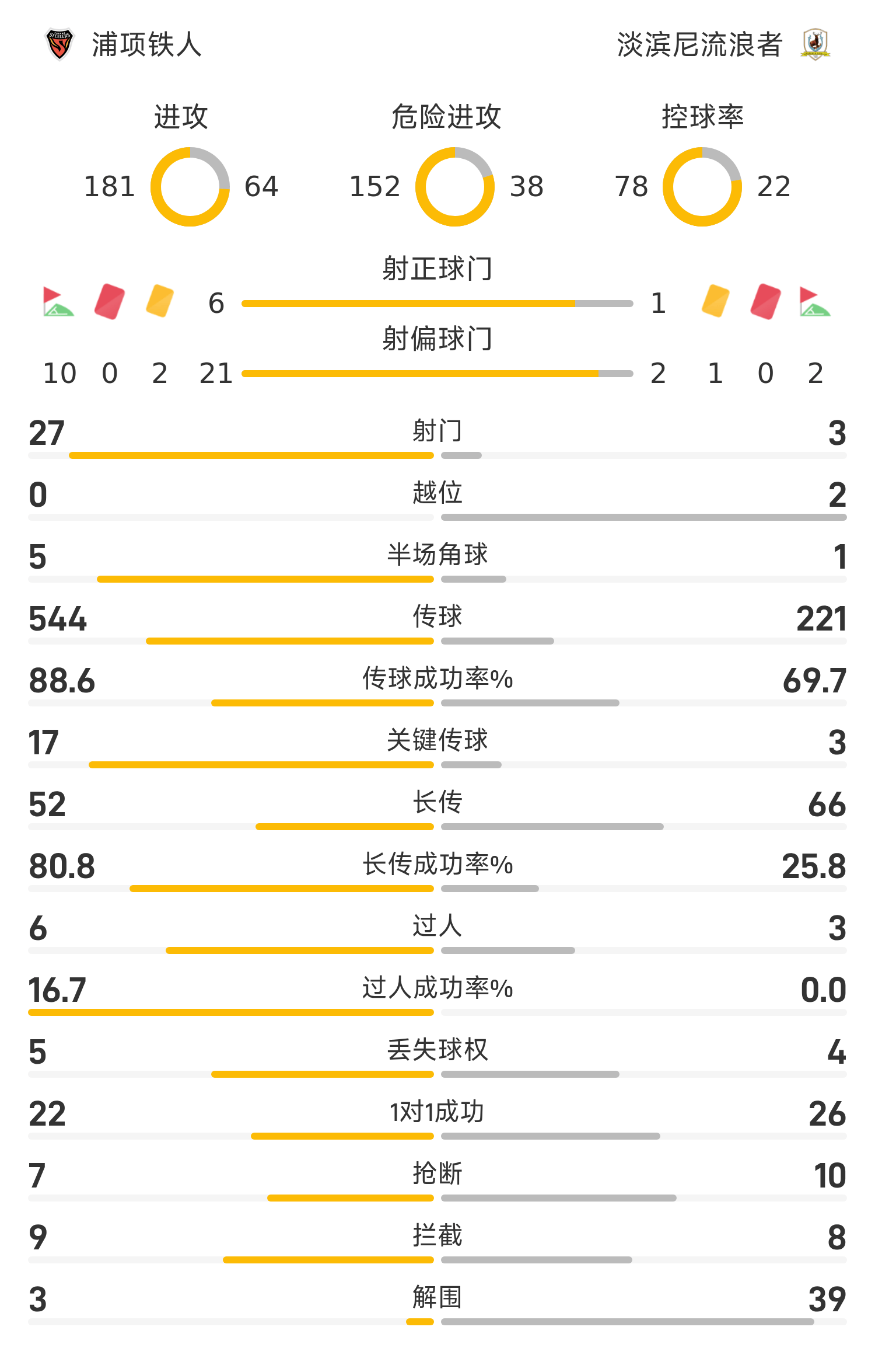 31’淡滨尼流浪者断球反击,吉本武三秒区内左侧打门被挡出端线