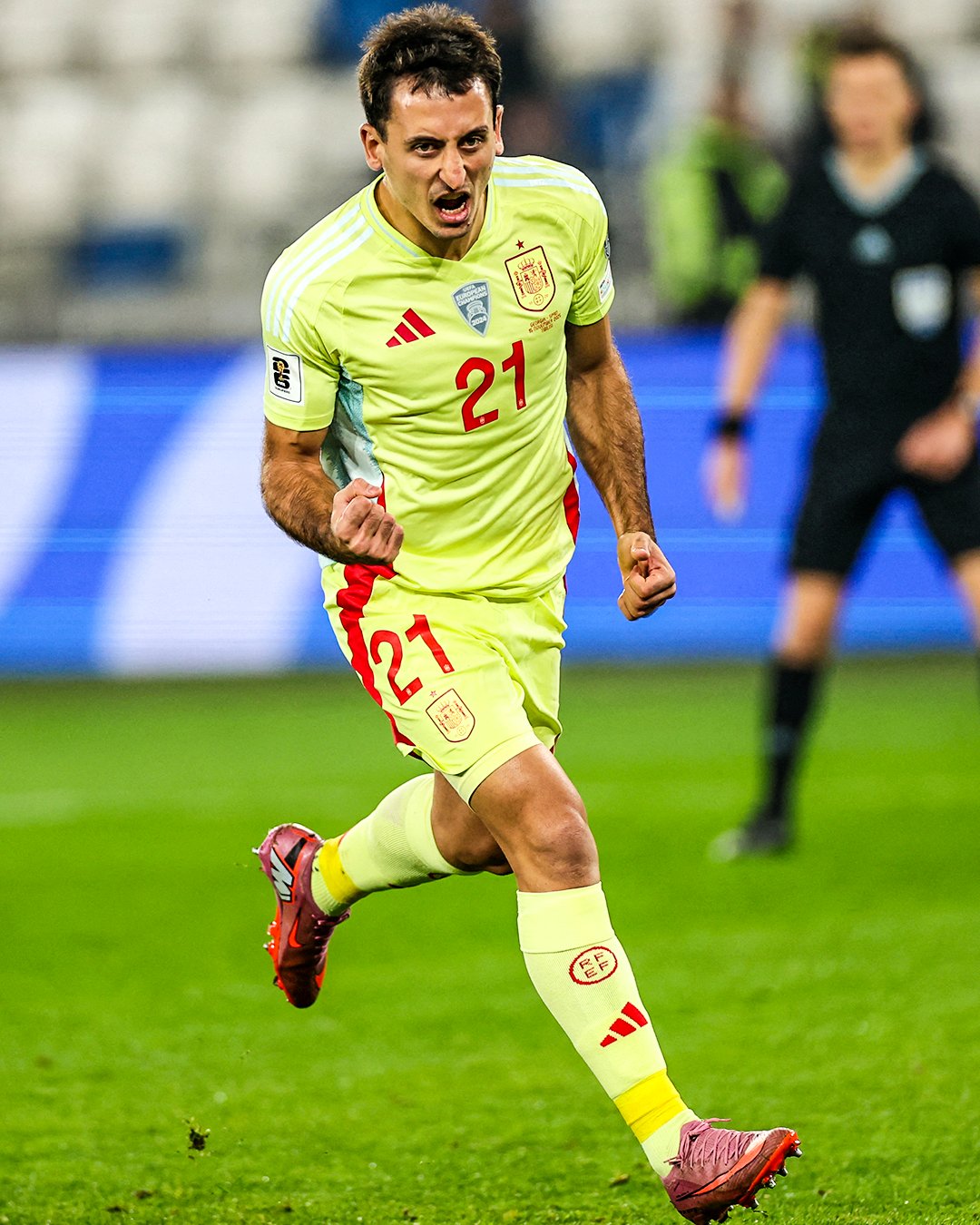 作为2024年欧洲杯总决赛攻入制胜球的英雄,奥亚萨瓦尔如今已彻底坐稳西班牙核心队员五号位位置。他在欧国联和世预赛中的稳定输出,成为“斗牛士军团”持续高歌猛进的关键支柱。