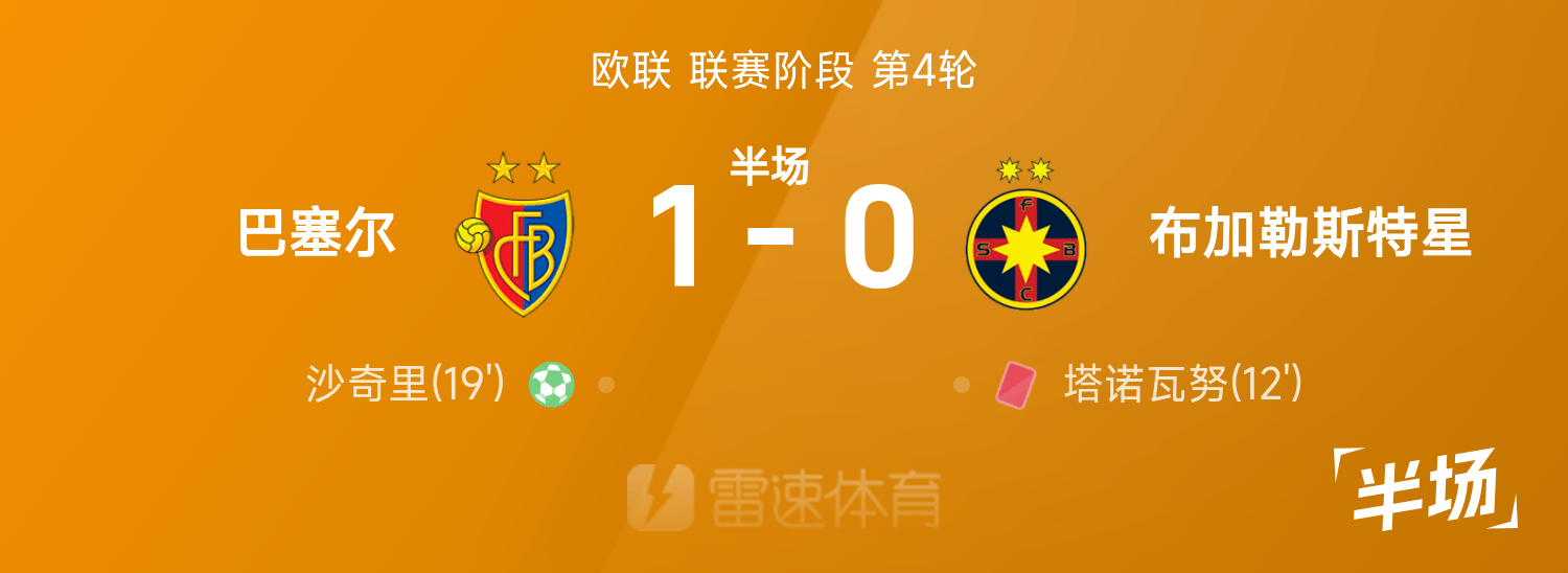 6686体育app11月07日讯 25/26赛季欧联联赛事阶段第4轮,巴塞尔迎战布加勒斯特星。半场战罢,双方赛果分暂为巴塞尔1-0布加勒斯特星,沙奇里破门建功,塔诺瓦努染红。