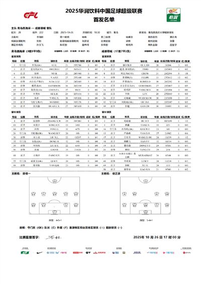 6686体育app10月26日讯 中超联赛事第28轮,青岛西海岸主队场迎战成都蓉城,赛前双方首发出炉。