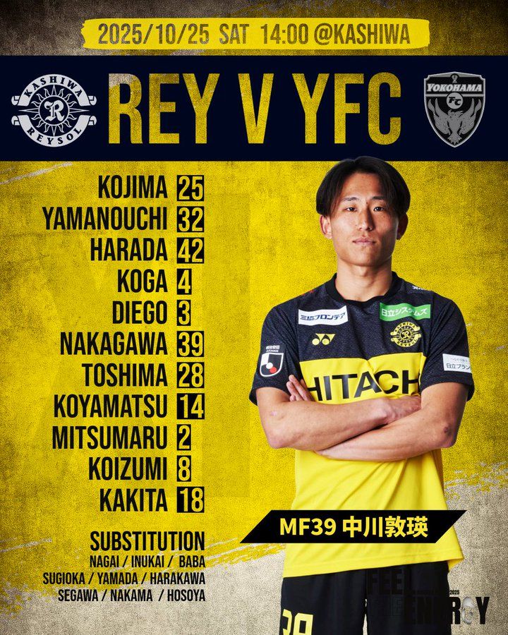 6686体育app10月25日讯 日职联第35轮,柏太阳神主队场对阵横滨FC。赛前,双方公布首发名单。