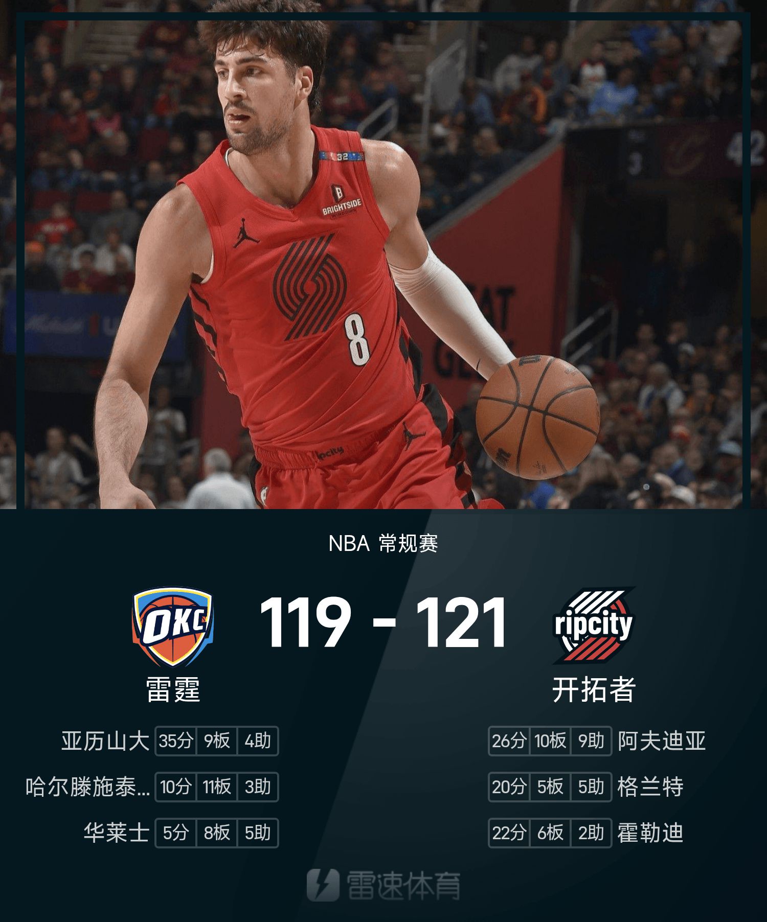 阿夫迪亚26分10抢篮板9助攻,亚历山大空砍35分9抢篮板。