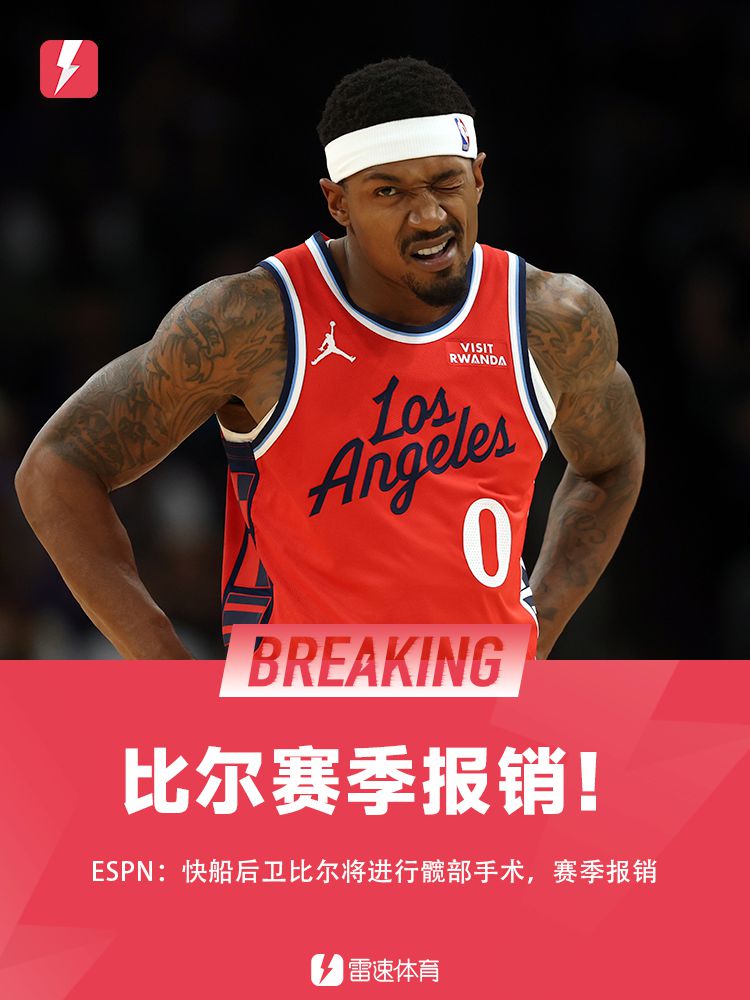 6686体育app11月13日讯 今日,据ESPN名记Shams报道,快船后卫比尔遭遇髋部骨折将进行手术,赛季报销。