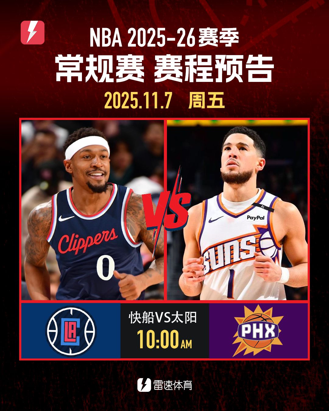 6686体育app11月6日讯 明日NBA常规赛仅有快船对阵太阳一场竞赛。